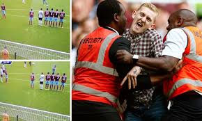 Pitch invader takes a free kick during West Ham-Tottenham match