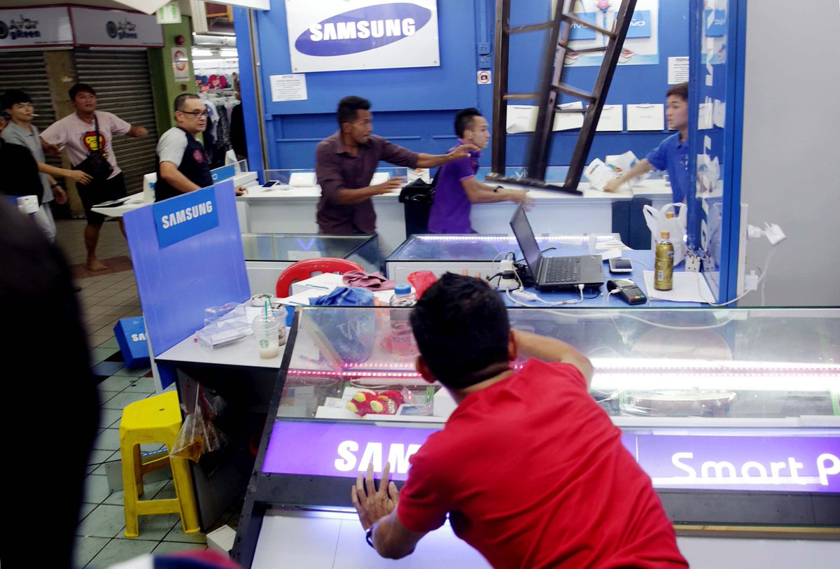 It is learnt that the fight, which occurred at about 4.55pm, erupted when a number of customers, some armed with parang, returned to the complex seeking a refund for the phone.