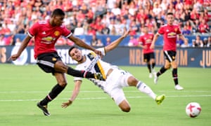 United’s new No9 did not register yet did not appear out of place against a particularly poor LA Galaxy outfit. Mourinho said: “A good thing for me today is he [showed] he’s a team player and was not worried about himself. He was worried about the improvement of the team. He didn’t score goals, but he played better than the ones who did score goals.”