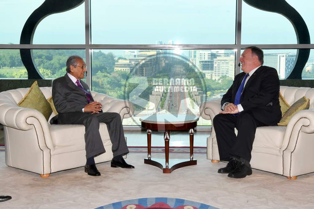 During the 30-minute meeting at Perdana Putra, Pompeo - who is the most senior US official to visit Mahathir since his election victory - also took the opportunity to congratulate the Malaysian prime minister for his election win in May.
