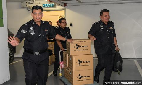 More than a dozen plainclothed and uniformed police personnel arrived at the office tower here at about 10.45am yesterday in three unmarked police cars before making their way to the offices on the 16th floor.