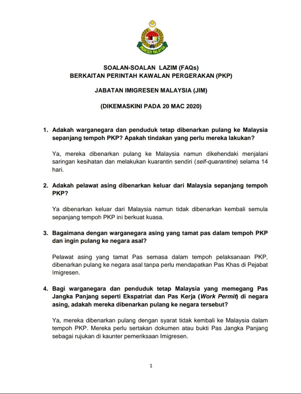 Soalan2 Lazim (FAQs) JABATAN IMIGRESEN MALAYSIA Berkaitan dengan Perintah Kawalan Pergerakan