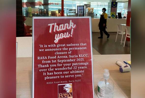 "Dukacita dimaklumkan bahawa RASA Food Arena, Suria KLCC ditutup secara kekal bermula 1 September 2021.
