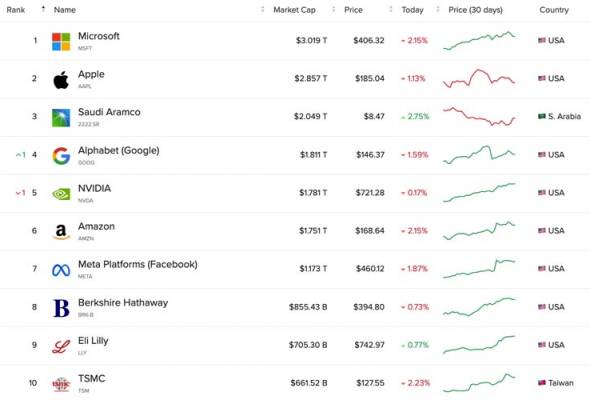 Top 10 Companies by Market Cap in 2024