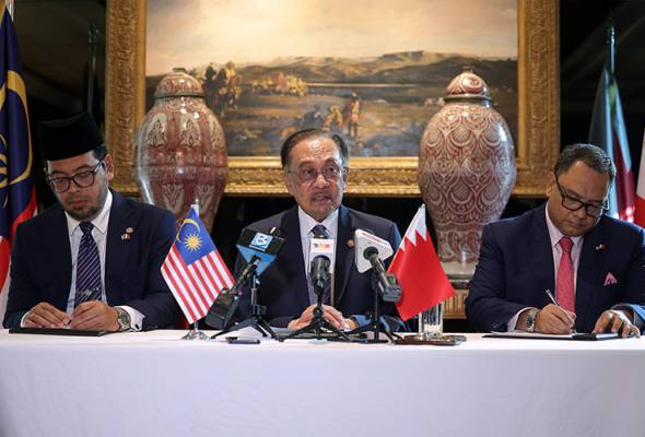 Anwar dalam sidang media selepas mengakhiri lawatan rasmi ke Bahrain atas jemputan Putera Mahkota dan Perdana Menteri Bahrain Salman Hamad Al Khalifa. - Gambar Bernama