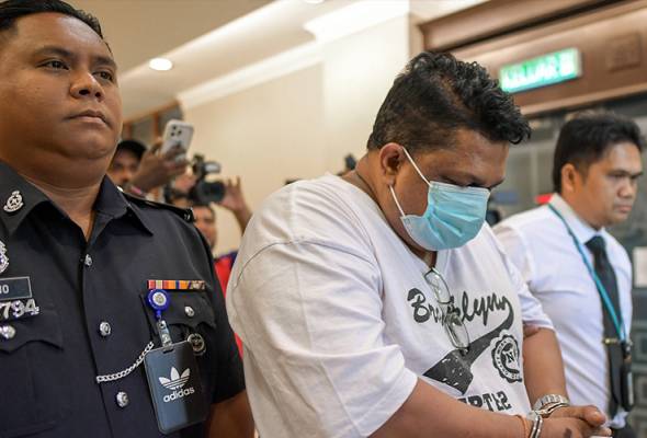 Pengarah syarikat R. Gopinatan Pillai (dua, kiri) mengaku tidak bersalah atas lapan pertuduhan menipu dan pengubahan wang haram berjumlah RM5.1 juta.- Foto Bernama