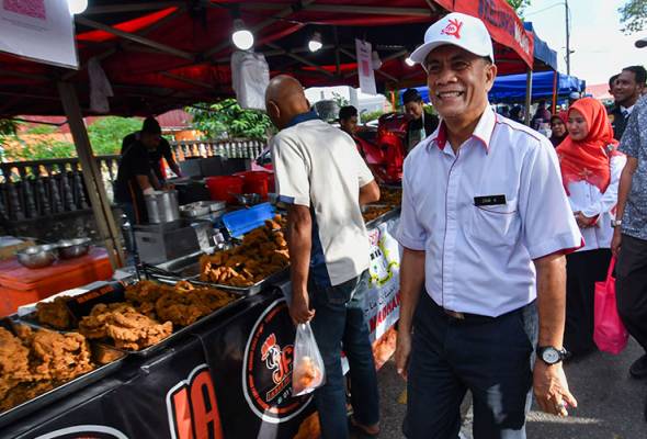 Zaini meninjau gerai makanan sempena Walkabout Bazar Ramadan 2025 dan Pelancaran Kod QR Whatsapp Aduan Kebersihan Premis Makanan di Bazar Ramadan Machang, Jalan Kweng Umat, Machang, 10 Mac. --fotoBERNAMA