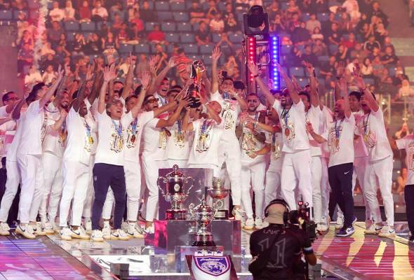 Pasukan JDT menjulang Piala Liga Super kali Ke-11 berturut-turut sempena Majlis Penyampaian Piala Liga Super di Stadium Sultan Ibrahim. - Foto BERNAMA