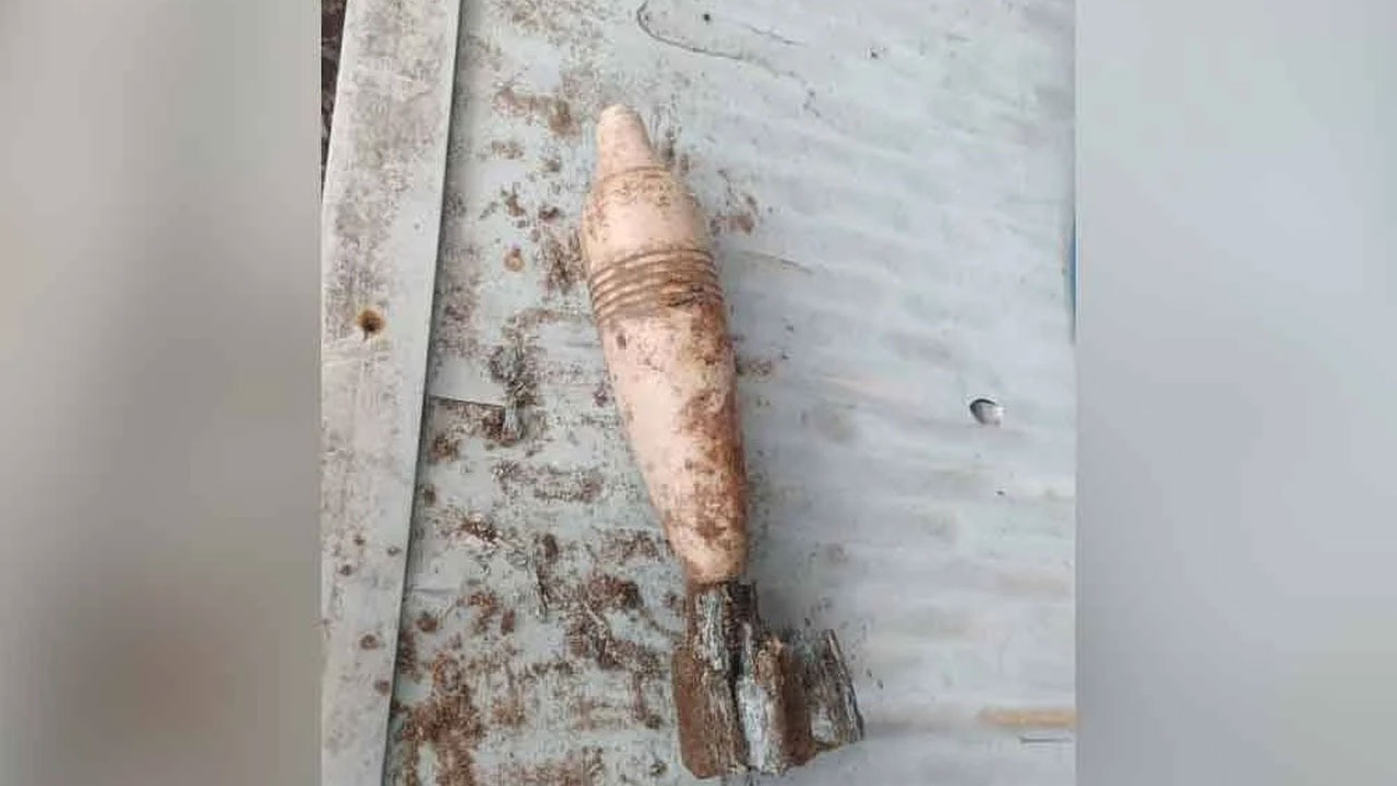 Sebutir bom jenis mortar ditemui seorang penduduk dalam semak berhampiran kediamannya di Kampung Kandang Hilir, Kuala Kangsar, semalam. - Foto ihsan pembaca/via Sinar Harian