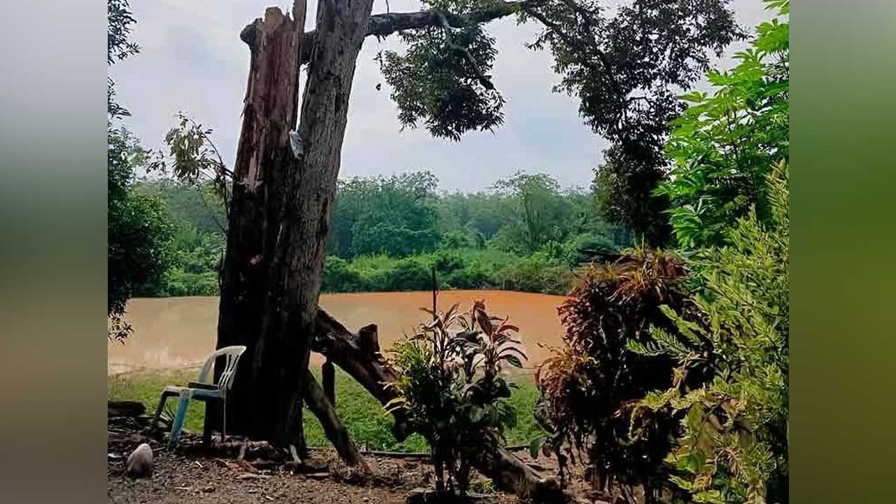 Petir menyambar pokok durian berhampiran, menyebabkan beliau terpelanting dan mengalami rasa seperti dicucuk jarum di ibu jari kaki. Beliau kini dirawat di Hospital Jasin.