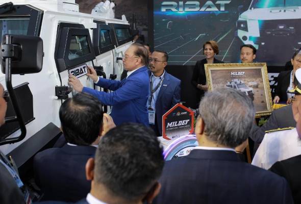 LANGKAWI: Perdana Menteri Datuk Seri Anwar Ibrahim hari ini melancarkan "RIBAT", kenderaan taktikal ringan mobiliti tinggi (HMLTV) pertama yang direka bentuk dan dibina sepenuhnya oleh syarikat tempatan Mildef International Technologies Sdn Bhd (MILDEF).