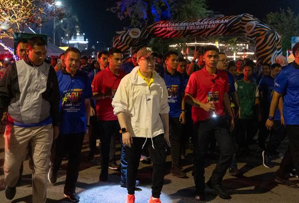 KOTA BHARU: Tengku Mahkota Kelantan Tengku Muhammad Fakhry Petra berkenan menyertai acara Night Colour Run sempena Festival Hari Belia Negara peringkat Negeri Kelantan malam tadi.